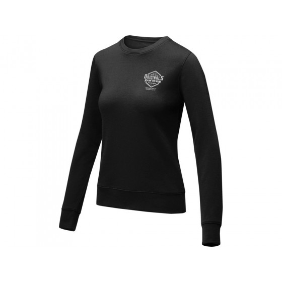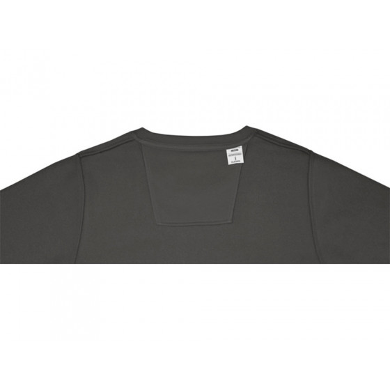 Свитшот с рукавом реглан. Горловина спинки и боковая часть манжет из риба 1х1. Карман кенгуру, диагональные боковые швы с наклонам к центру переда.