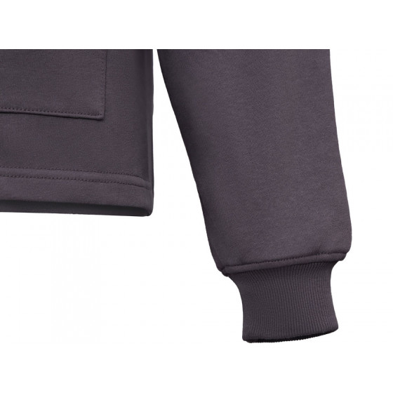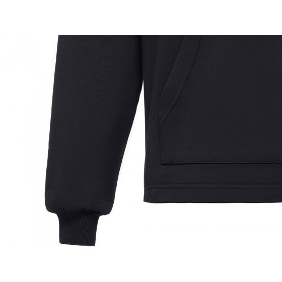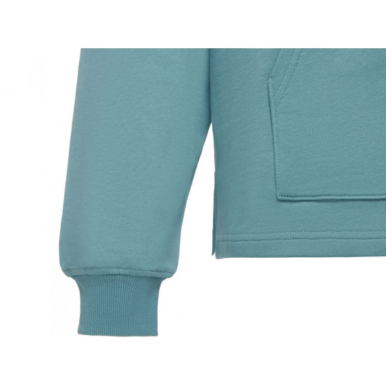 Свитшот с рукавом реглан. Горловина спинки и боковая часть манжет из риба 1х1. Карман кенгуру, диагональные боковые швы с наклонам к центру переда.