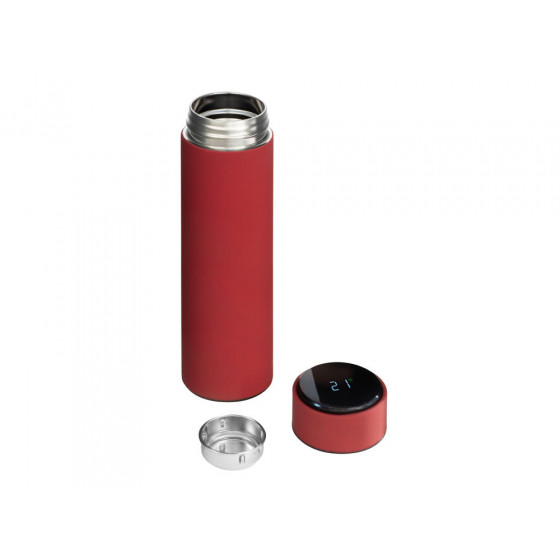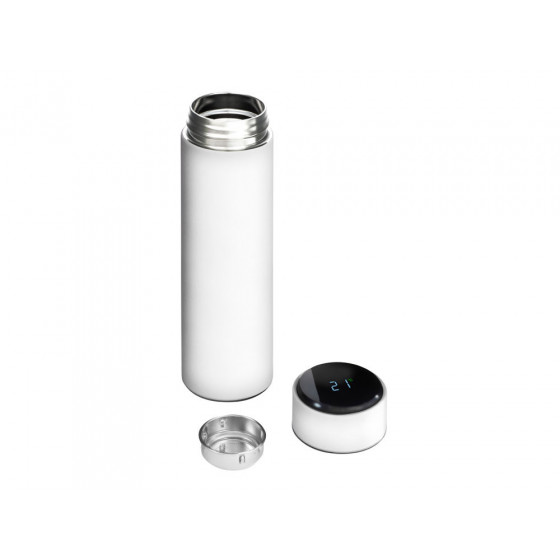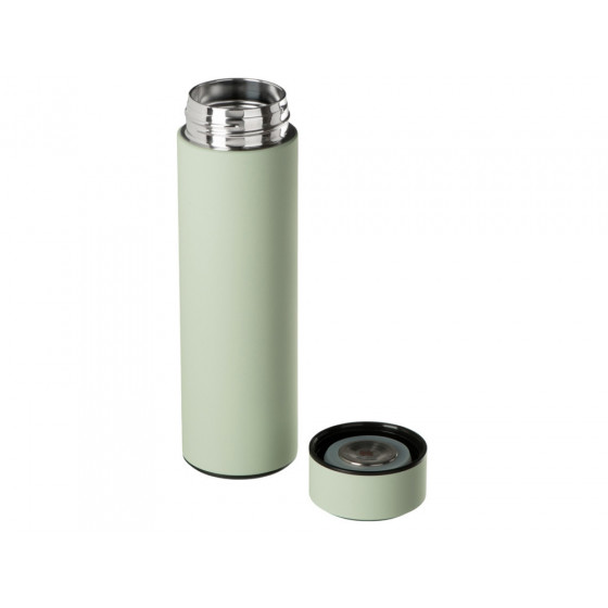 Вакуумный термос «Module X» не только сохраняет ваши напитки горячими, но и показывает, насколько они горячие! Уникальная особенность термоса — это сенсорный индикатор температуры, расположенный в крышке. Чтобы узнать температуру внутри термоса, достаточно прикоснуться к поверхности крышки. Батарейку CR2032 по истечении срока работы (1-2 года) можно заменить — для этого открутите верхнюю часть крышки против часовой стрелки и аккуратно поменяйте элемент питания.