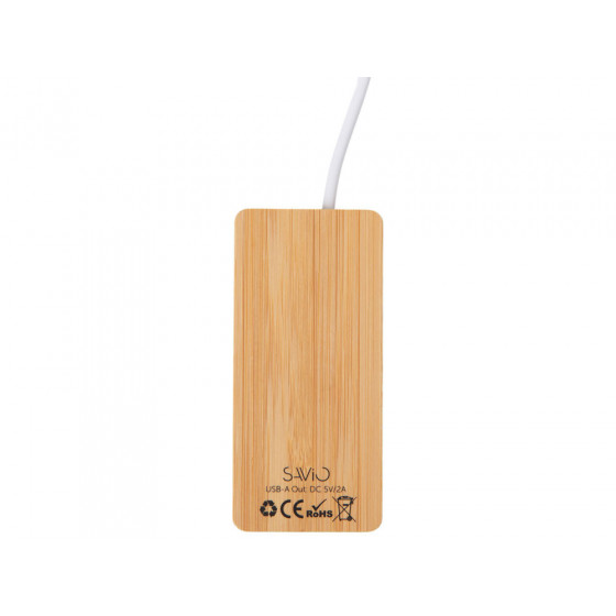 Универсальный USB-хаб, созданный для тех, кто ценит порядок, экологичность и стиль в рабочем пространстве. Корпус устройства изготовлен из натурального бамбука и переработанного ABS-пластика — это не только подчеркивает вашу заботу об окружающей среде, но и придаёт хабу теплый, премиальный вид, вписывающийся в любой интерьер — от домашнего офиса до коворкинга. Устройство оснащено тремя портами USB-A и одним USB-C, обеспечивая подключение всех необходимых гаджетов одновременно. А встроенная белая подсветка с возможностью нанесения логотипа — это не просто функция, а элегантный акцент: ваш бренд или инициалы мягко светятся, привлекая внимание и добавляя индивидуальности вашему workspace.