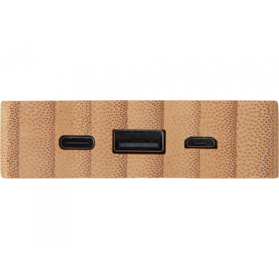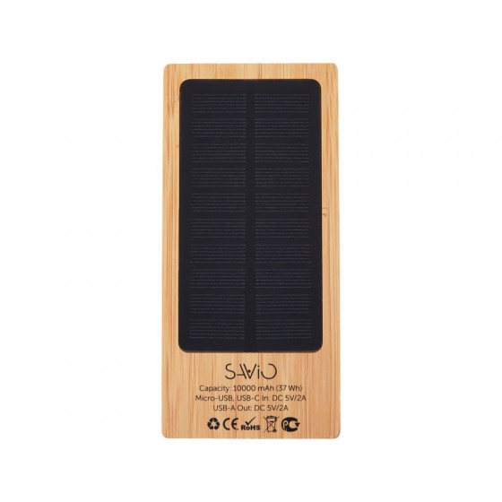 Внешний аккумулятор ёмкостью 10 000 мАч, созданный для тех, кто ценит стиль, функциональность и заботу о природе. Корпус устройства изготовлен из натурального бамбука и переработанного ABS-пластика — это не только придаёт ему уникальный эстетичный вид, но и снижает экологический след. С одной стороны — солнечная панель, позволяющая подзаряжать устройство от солнца, с другой — панель с возможностью нанесения светящегося логотипа компании или бренда. Идеальное решение для путешественников, офисных сотрудников и корпоративных подарков — технологично, стильно и ответственно.