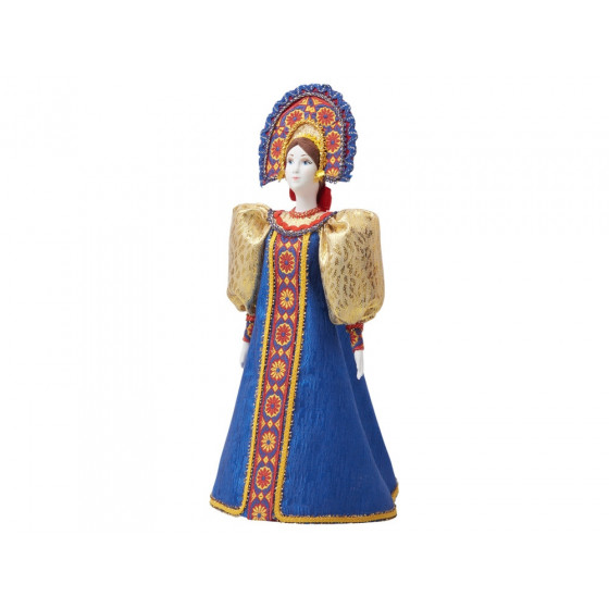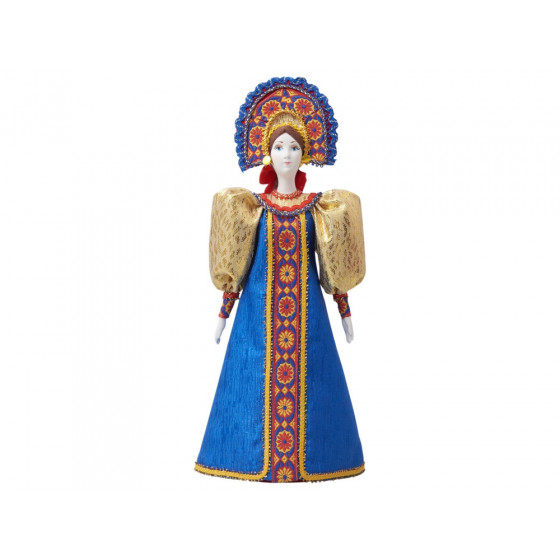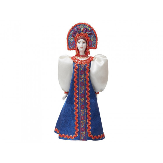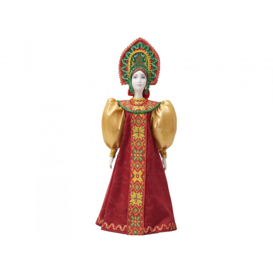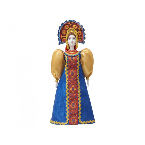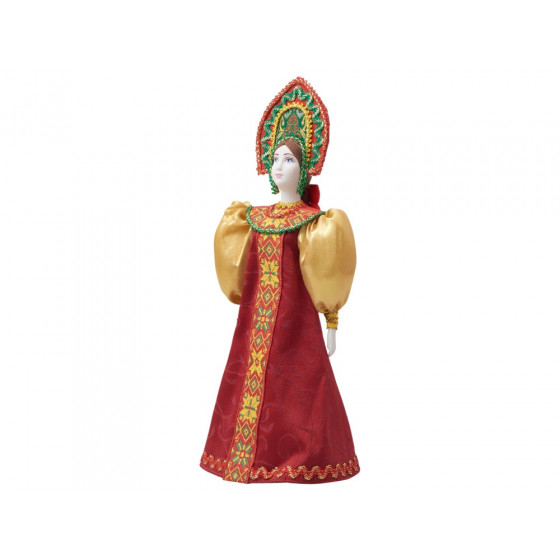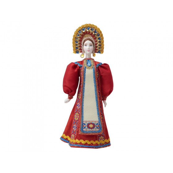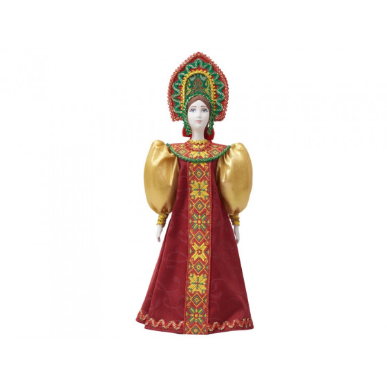 - Фарфоровая кукла в народном костюме ручной работы: расписной сарафан и кокошник с традиционной вышивкой воссоздают образ русской красавицы.