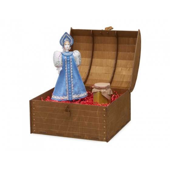 Роскошная упаковка: деревянный сундук с изящным замочком превращает вручение подарка в особый ритуал. Дополнительное брендирование шильдом спектрум делает презент эксклюзивным и памятным.